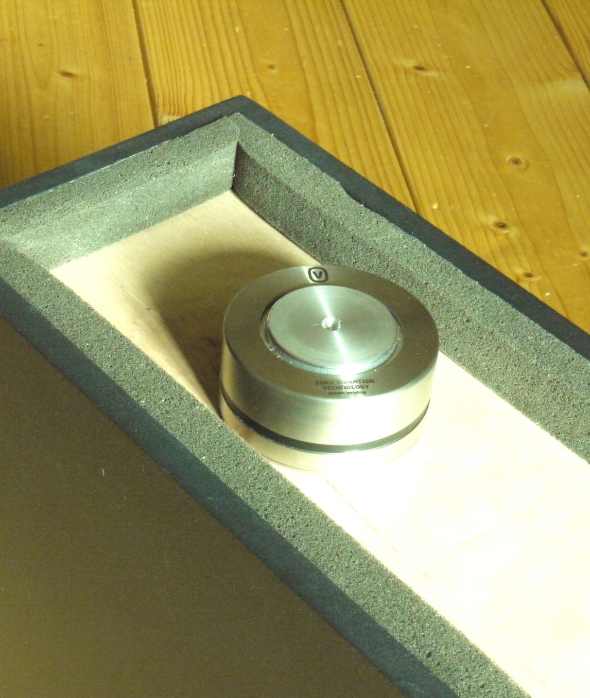 My choice of expanding draught excluder makes fitting the top panel a bit of a trial, but you are rewarded with a really sand-tight result. Alternatively, just use standard 5mm foam strips. In this case, I left the top-plate unpainted as I was going to be using it with Neodio Origine B2 feet between the ‘sand-box’ and the PowerHAUS and the B2s like a natural wood surface. I also sank the top panel down around a cm in order to compensate for the height of the B2s while still keeping the Chord unit’s feet clear of the surround. Again, the beauty of DIY is that you can adapt the design to circumstances. With supports that includes issues of footprint and available vertical space (within a rack for instance) both of which can present challenges for off the shelf solutions.