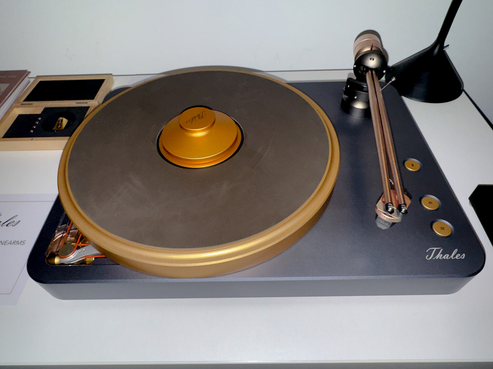 Thales showed two new products in Munich, both exhibiting the brand’s supremely elegant engineering and ability to think outside the box. The Reference Turntable is a clear evolution of the company’s previous models, with the same compact footprint and flawless surface finish and internal battery power supply. Beyond that, the dynamic elements are entirely different. The exquisite, miniature, dual fly-wheel drive of the Compact has been replaced by a centrifugal/mechanical regulator that balances spinning magnetic elements against an outer inductive ring. As the pulley drive spins, the six rod-mounted masses push outwards against the inductive force of the peripheral housing, bringing the rotational moment into perfect balance. Any increase in speed is resisted by the force countering outward movement of the weights, any decrease by the flywheel effect of the mechanism itself. Like all things that are truly elegant it’s also both precise and simple – although changing speeds does involve an extra gear – a switch that’s achieved automatically by a mechanical arm: shades of future past!