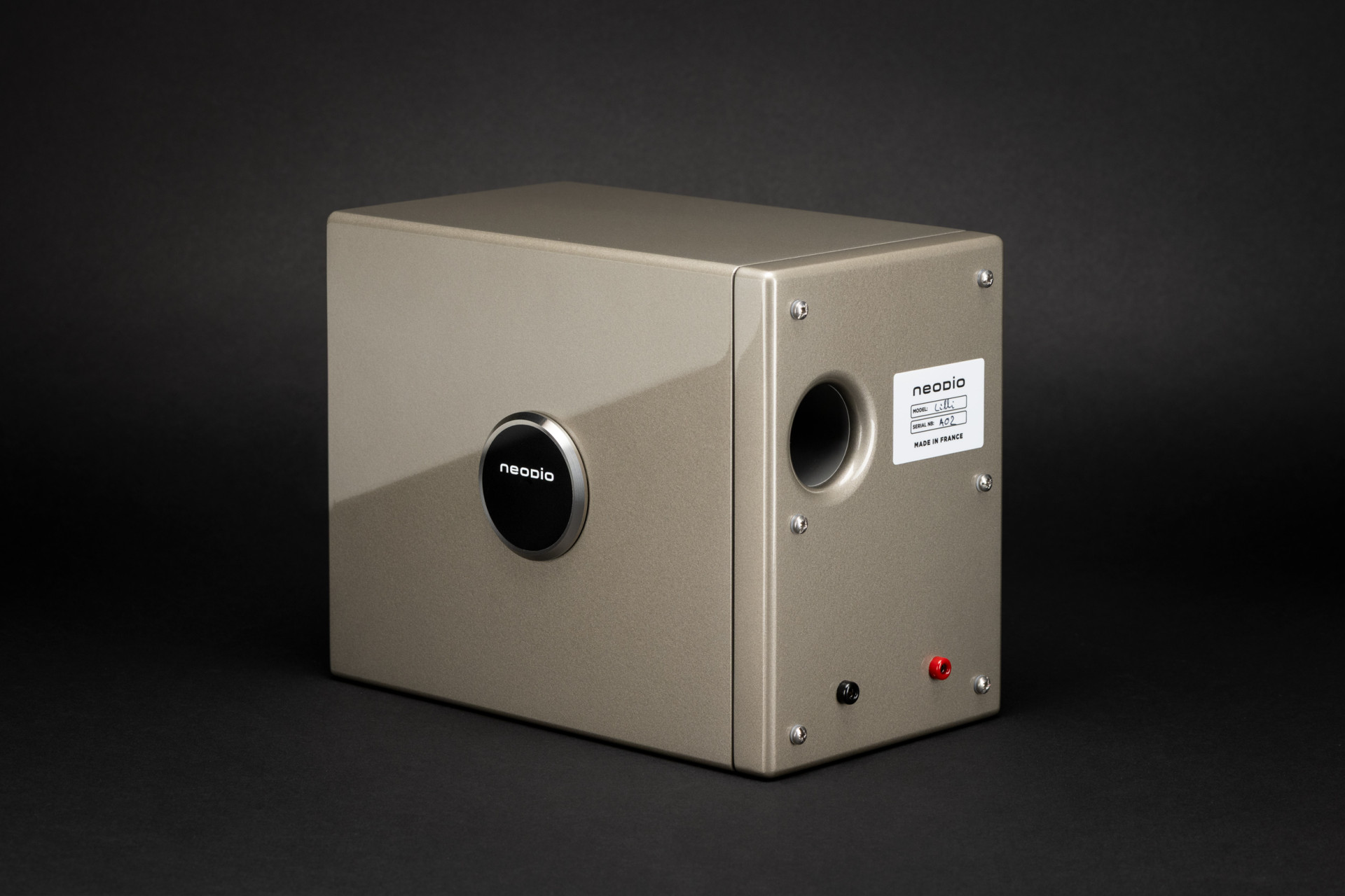 Externally, the diminutive cabinet is painted with a gloss metallic finish in what is euphemistically called Mouse Grey – meaning something that has shades of both beige and grey, along with a metallic hint that’s perhaps suggestive of Titanium. What I can tell you is that it’s a colour that tends to take on and tone with its surroundings. Other RAL colours could be specified with order, but that would incur additional cost. Neodio also offers a matching stand for the Lilli which looks conventional enough but which, rather than welded or bolted metal construction, is glued together from the same HDF material as the cabinet, the goal being a light, rigid and non-metallic structure. Naturally, it can be ordered with Neodio’s excellent Harmonie footers, in place of conventional, M8 spikes.
