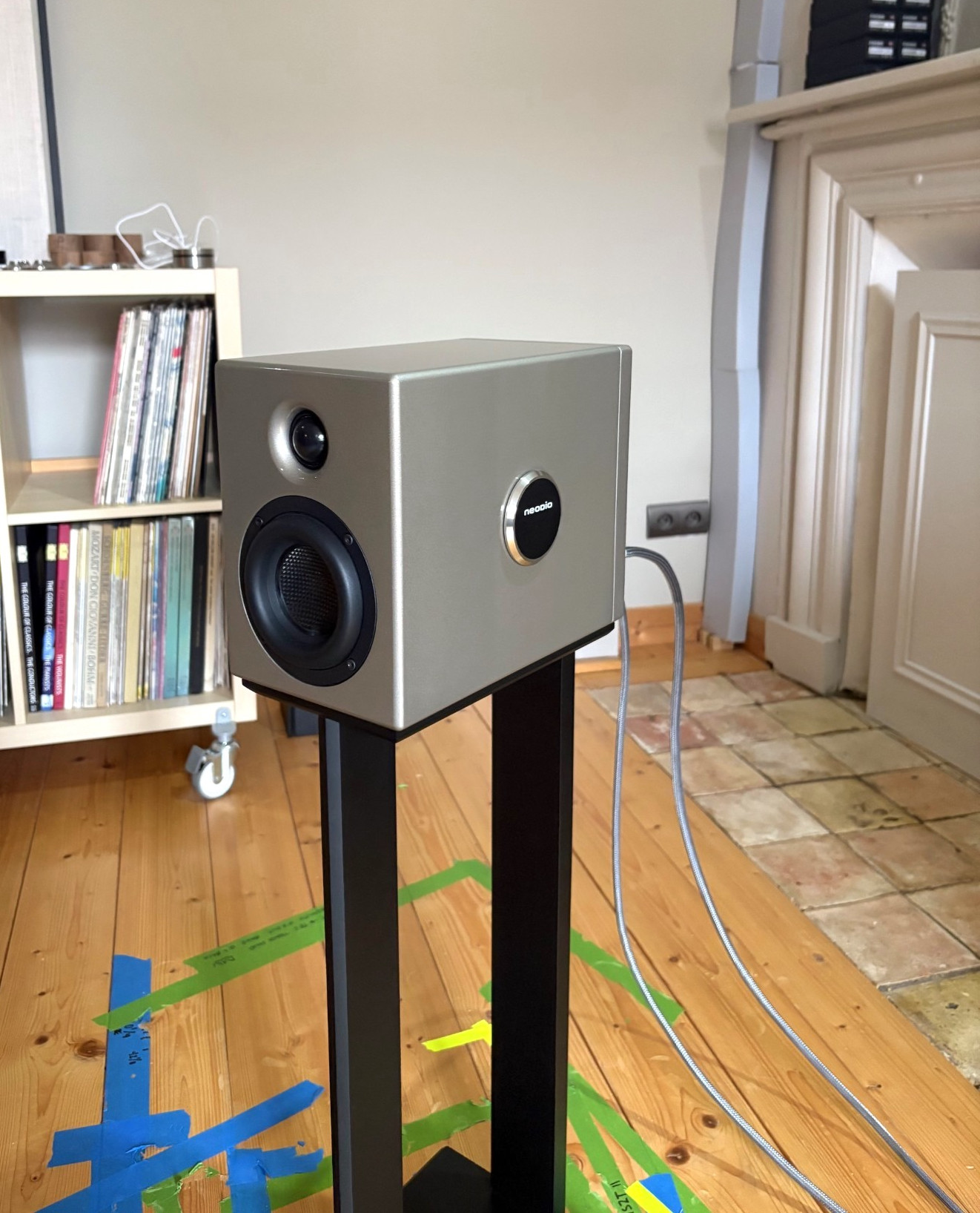 For once, the photographs are fully representative of reality. The Lilli really is as small as it looks in the pictures. Imagine something slightly smaller than an LS3/5A, tipped on its side and with drivers mounted in its base and you’ll not be far off the mark. Mind you, the paint-finish and profiled edges make this a far classier looking little box than the BBC design ever managed. Set up in my case was classically simple: an equilateral triangle with the speakers heavily toed in, with their listening axis to pass in front of the listener. I ran the speaker well away from boundaries, although Neodio insists that it is comfortable with as little as 10cm between it and a rear wall – although you can expect some flattening of the image if you go that route.