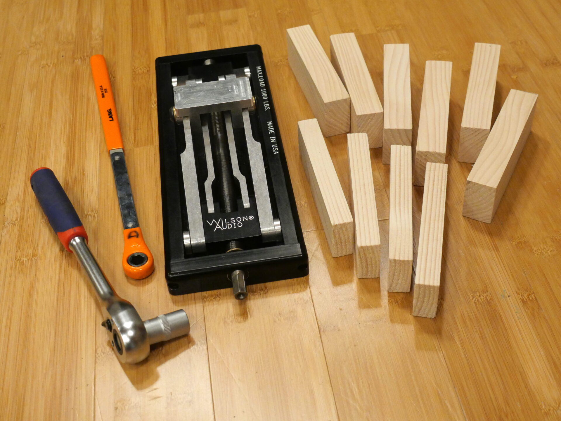 Using the jack, it’s easy to replace the footers with the casters, but the order in which you do it matters. You are going to have to raise the outriggers (and thus the whole speaker) enough to present the threaded post on the caster in a near perpendicular attitude to its mounting hole.One trick here is to insert the caster’s threaded post from below, adding the spacer from above once the post is in place. The Narrow post will slip into place at a more acute angle than if the spacer is in place to start with – meaning you don’t need to lift the speaker quite so high. Depending on the size of the wheel and the height of the post, you could end up raising one face of the speaker significantly – resulting in a serious tilt. Which side you raise depends on the aspect ratio of the speaker’s footprint (how wide it is as opposed to how deep) and it’s weight distribution. Most (but not all) box speakers have most of their drivers on one side, which leads to an off-set centre of gravity. This is a particular issue if, like the Stenheim U2 or the Peak Consult Dragon Legacy, there are large drivers (with massive motor assemblies) located at the top of the enclosure. Tilting the speaker moves that mass a long way. Tilt it enough and there’s a real risk that the centre of gravity escapes the speaker’s footprint!