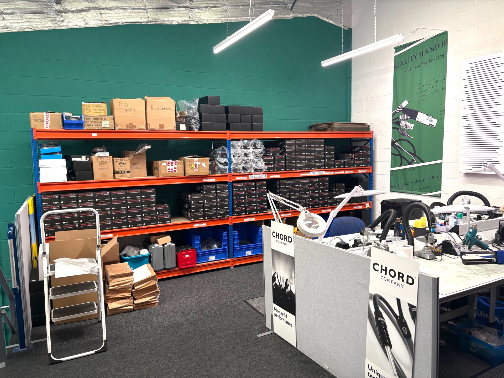 The company first moved to its current home in 2003, taking over and combining four adjacent units on the newly built Solstice Business Park in Amesbury, outside Salisbury. Those four units have now expanded into six, as the company continues to grow, with economies of scale demanding ever greater storage capacity. Stand on the roof of the building, look West and you’ll see Stonehenge. Turn round, look East and you’ll see the Aircraft and Armament Experimental Establishment, Boscombe Down – the UK’s very own equivalent to Area 51 (although Area 0.51 might be more appropriate). It’s a juxtaposition that maybe helps explain Chord’s slightly bizarre combination of almost Hippy-ish nomenclature and access to cutting-edge, aerospace and military materials, technology and manufacturing resources. Despite the burden of those ‘good value’, ‘small’ and ‘specialist’ labels, there’s considerable technology on show here as well as refreshingly open-minded and collaborative attitudes. This is one environment from which Not Invented Here syndrome is entirely absent.