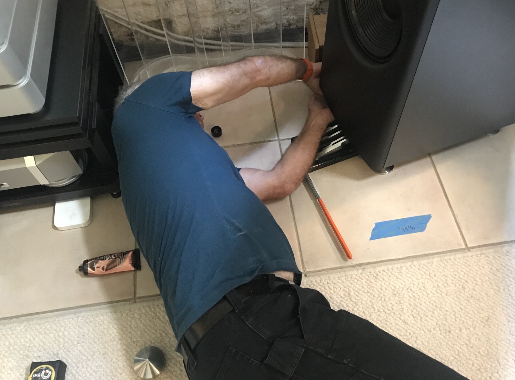 After four or five hours of minute shifts, assessments and adjustments, performance started to plateau – the point where it starts to become different rather than ‘better’ or ‘worse’. In many ways, this is the hardest point to recognise in the entire process, especially if you’ve been concentrating ever more closely on making or repeating tiny adjustments. There’s an almost compelling logic to working with speakers that, if you are not careful, pulls you first into and then firmly down a bottomless rabbit hole of circular adjustments that never lock out at a solution. You need to keep an eye and both ears on the big picture – otherwise you get lost in the long grass of sonic minutiae. It takes practice and a degree of realism (in every sense) to realise just when the job is done – and just when the client will be happy. Fortunately, with the system’s owner on hand, that doesn’t need to be a guess. Stirling habitually brings the client in at regular intervals just to ensure that he’s still on course and working towards the right goal. It’s not unusual to be faced with alternative solutions, settings that lean the musical performance one way or another. This is when the owner’s input is invaluable, as it proved in this case. This wasn’t a situation of either or. It was a question of, “are we there yet?” The answer, expressed as a silly grin, was definitely a resounding yes.