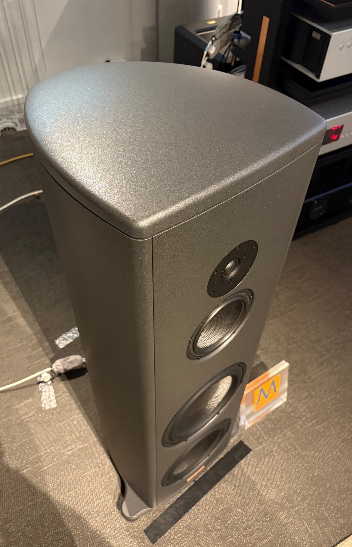 The other big change comes in the shape (and execution) of the drivers. The S5 2024 benefits from Magico’s Nano-Tec Gen 8 cones, an aluminium honeycomb ‘bowl’ sandwiched between nano-reinforced carbon skins, directly inherited from the M-series and mated to a new foam surround that offers greater flexibility and more linear excursion. The 6” midrange unit is built onto a 3” voice coil, those in the 10” long-throw woofers being 5” in diameter, numbers that are more than a little suggestive of the speakers’ dynamic ambitions. You might as well put a winking emoji where the dust cap would normally be. The 28mm diamond-coated Beryllium tweeter is also derived from the unit used in the M-series, while the revised face-plate and driver baskets make extensive use of curvature to further reduce diffraction effects, in line with the heavily profiled cabinet. The revision extends to the peripherals too, with the speaker now supported on a trio of feet directly derived from the M-pod footers.
