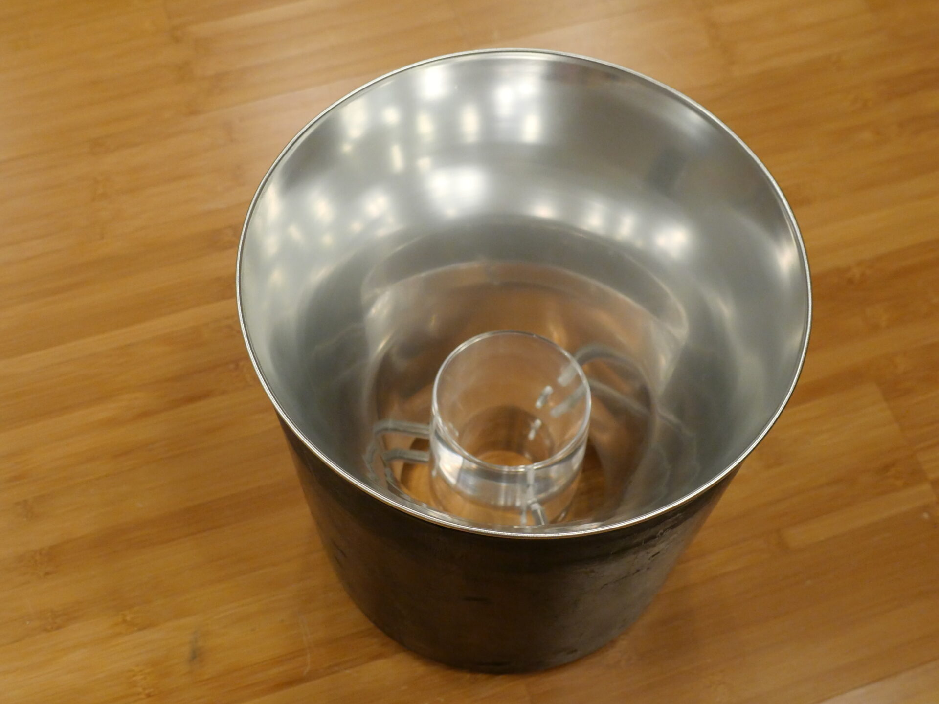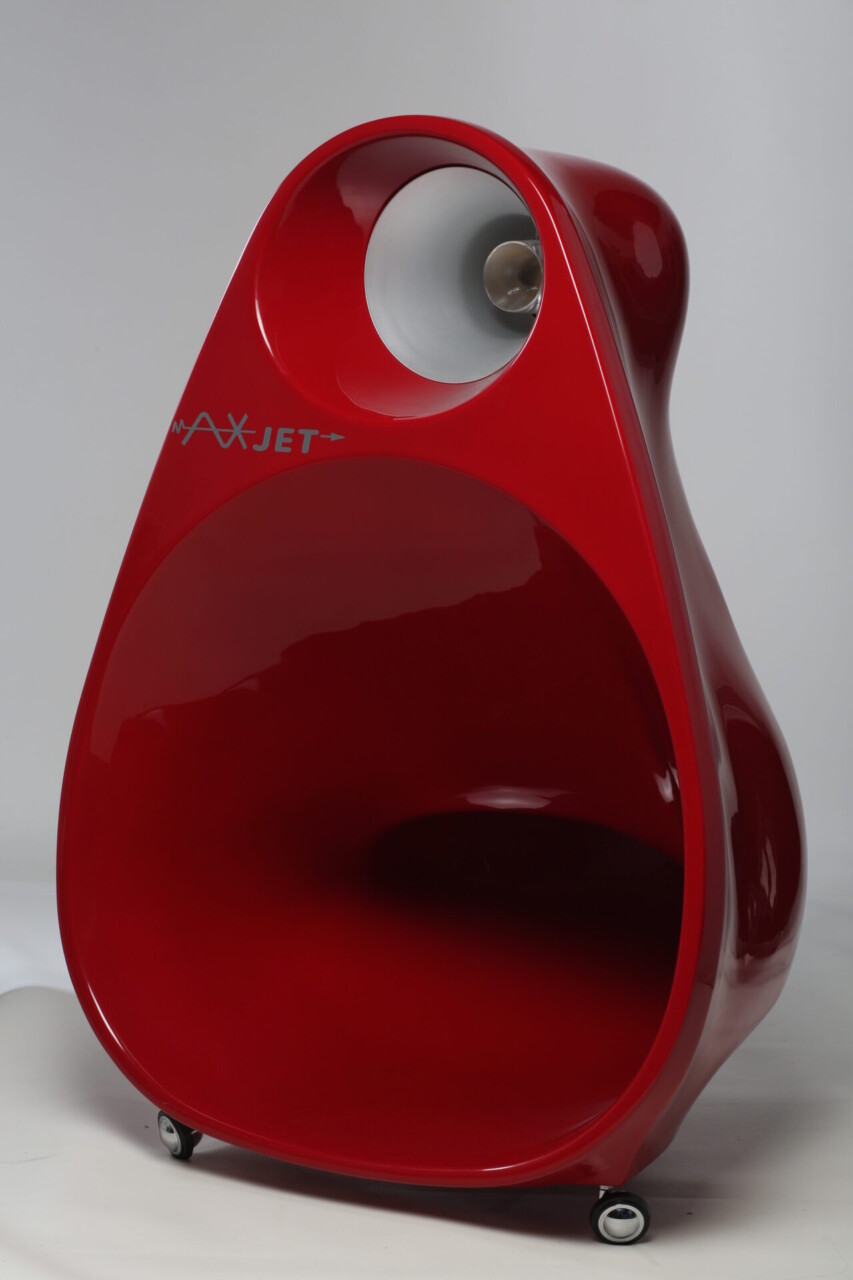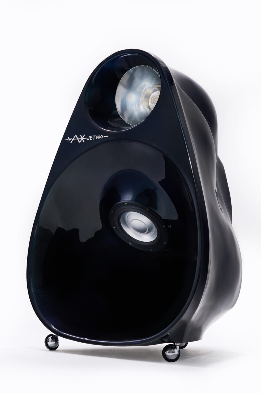 Superficially similar to the Lowther, with their cream paper composite cone/whizzer construction, the BD4B (AX) was specially adapted for the AXjet Pro, using a polycarbonate central ‘point’. But what makes the AXjet horn topology unique is the Afterburner, a spun aluminium ‘bucket’ that fits into the throat of the forward firing horn. Carefully profiled front and back, it mates with the driver basket and the driver’s central ‘point’ to produce a geometrically and volumetrically identical cavity on either side of the drive unit, thus creating a truly balanced arrangement, equally loading front and rear. In the centre of the Afterburner there is a polished polycarbonate treble horn to extend and augment the high-frequency output up to 20kHz, without the characteristic honking or hot-spots that afflicted the Lowther drivers.