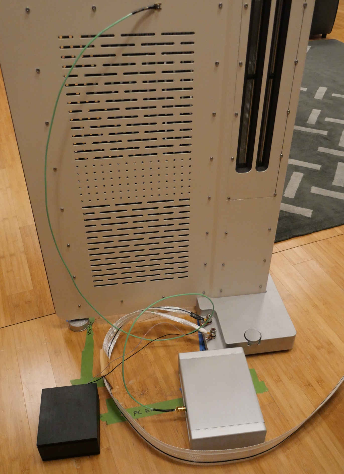 So much for the general approach: what happened when I hooked up the QKORE1s to the Diptyques? Connecting the Diptyques to the QKORE ground boxes, hooked up with the standard, green QKORE cables, has an immediate and significant impact, sonically and musically. There’s an immediate drop in grain within the sound-field, with a commensurate increase in focus, transparency and presence. Micro-dynamics are better resolved, bringing texture, harmonic identity and immediacy to voices and instruments. All of which is great, but the real musical impact is rhythmic and in terms of dynamic response. Tempo is more explicit, shifts in tempo more dramatic. Dynamic graduation and the step between notes (especially pitch and level at low frequencies) is defined more clearly, changes in density have greater presence and impact. The end result is that the pace and flow in the music, the articulation of musical lines, the sense of accent and diction in vocals or shaping in instrumental notes all combine to create a more natural, more communicative and more engaging performance – from the musicians and the speakers/system.