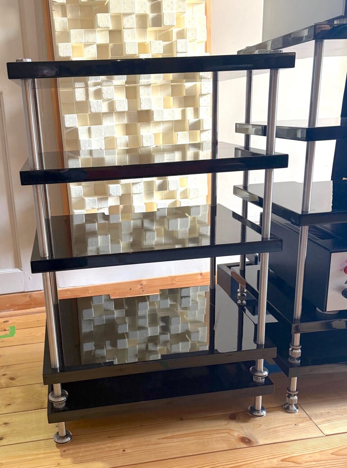 In writing about the excellent results achieved with the Neodio Harmonie Footer under speakers, I speculated that it might work even better under racks. The reasoning behind the supposition is simple: the Harmonie has a flat base (as opposed to a pointed contact). The requirement to adjust speaker attitude means that loudspeaker cabinets are rarely set level, compromising the Harmonie’s contact area: racks on the other hand, should be set exactly level, which should maximise the Neodio footer’s sonic benefits. Throw in the fact that used on a rack those benefits potentially extend to more than just one box and you can see why the idea would be attractive… Too attractive to ignore.