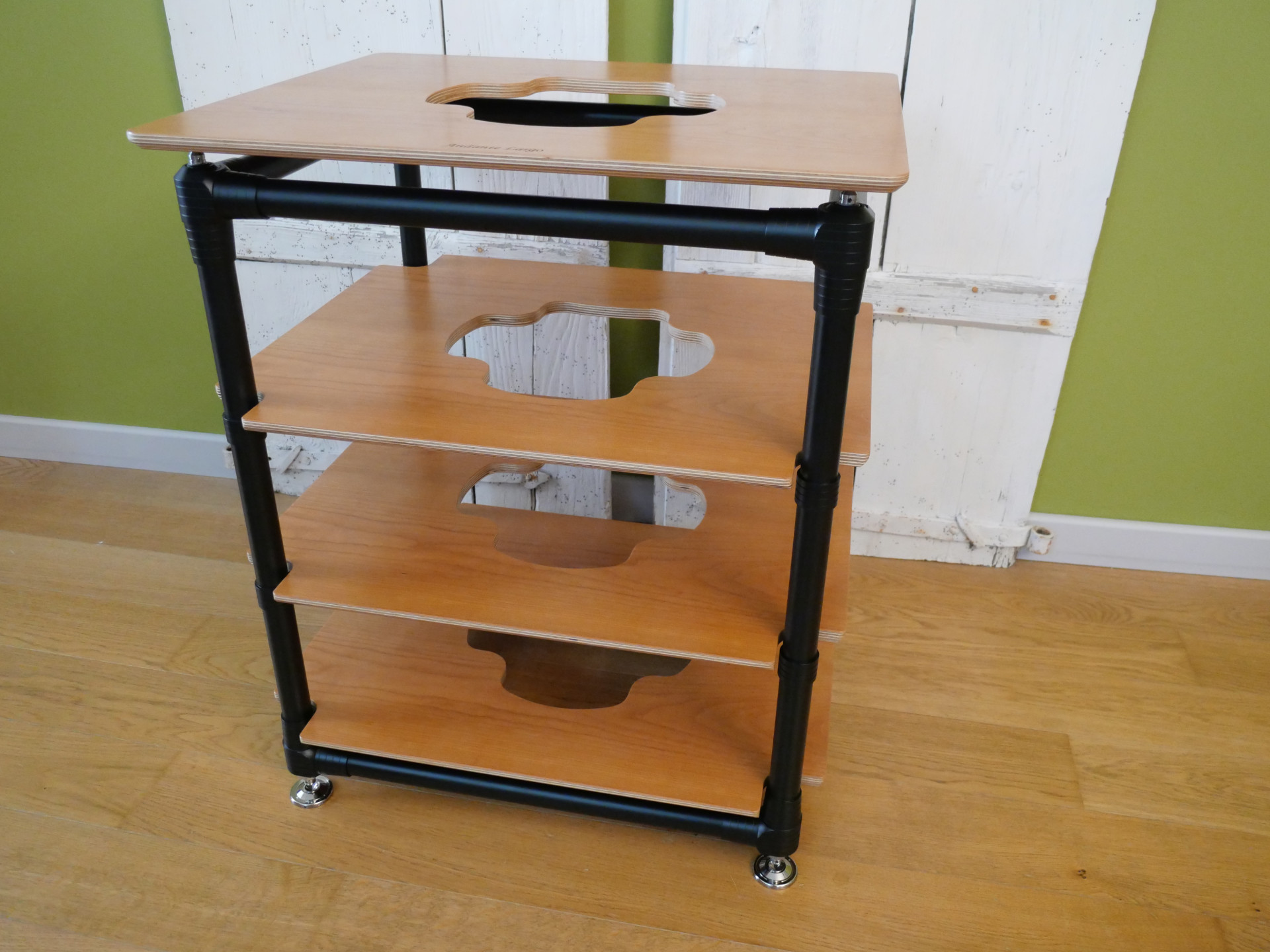 At least from a UK perspective, the audio rack story started with the various lightweight metal frame tables promoted for use with the LP12 turntable. Originating with the Linn set-up jig, these are perhaps best personified by the Sound Organisation table, a simple welded-steel frame with spikes on the bottom and a chipboard or MDF shelf on top, a single level structure that quickly evolved into the three, four or five shelf racks from the likes of Target and Apollo, that soon became industry/customer standard for equipment support. In many ways, the Andante Largo rack looks like and is a direct, but significantly more evolved development of those early racks. Indeed, Ryo Suzuki of Andante Largo was the long-time distributor for Linn products in Japan. His racks have multiple shelves and spikes on the bottom, but there all similarities end. Even the shelves and spikes are totally different to those original designs. What they do share, is the minimalist, skeletal form of those early audio racks, but executed with an elegance, fit and finish that is, somehow, unmistakably Japanese.