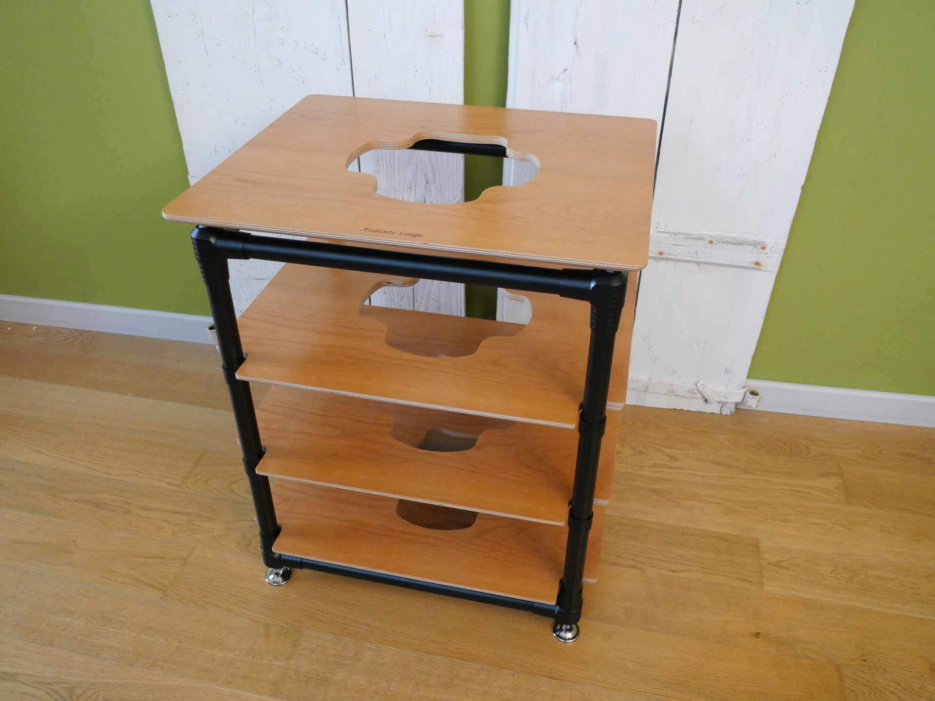 Talking of large components, Andante Largo stipulate total load and individual shelf loads for the Grand Tower racks, also differentiating between equipment with four or three feet. Total load is up to 250kgs (550lbs). Individually, standard (14.4mm) shelves will support 50kg equipment with four feet, 40kg if three feet. The heavy duty (17.4mm) shelves up those numbers to 80kg and 70kg respectively. That’s enough for most ‘rackable’ components and shelves can be mixed and matched in a single rack, with Andante Largo suggesting against heavy shelves unless they are necessary, with the supported equipment approaching (say, 75% of) the weight limit for the standard shelves. Where you might want to be careful is that those shelf weight limits also apply to the amp-stands and there are a few truly monstrous amps out there…