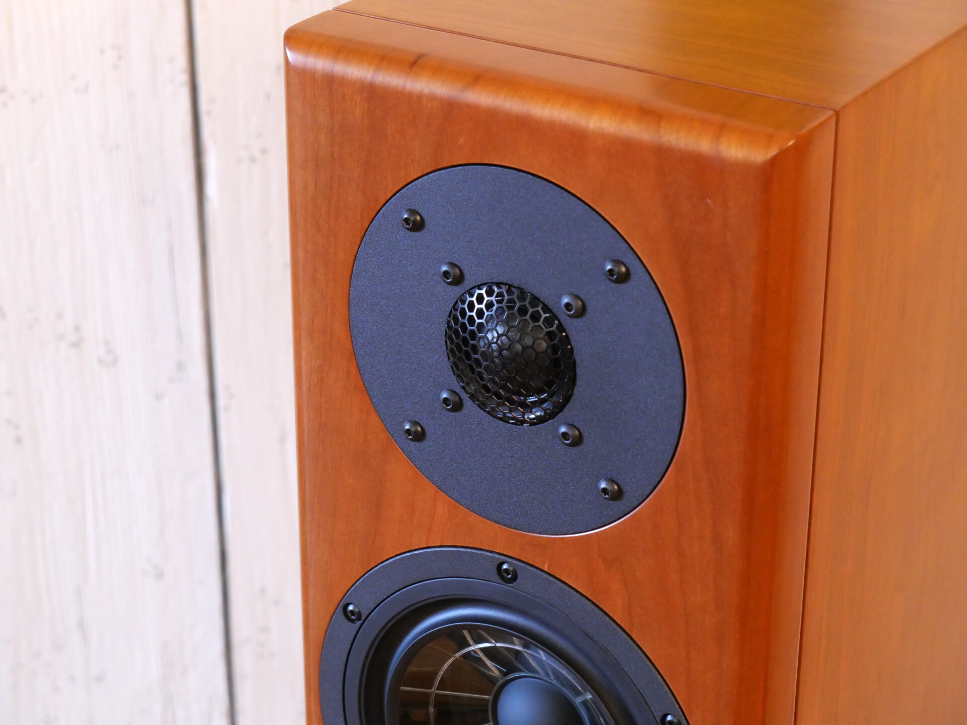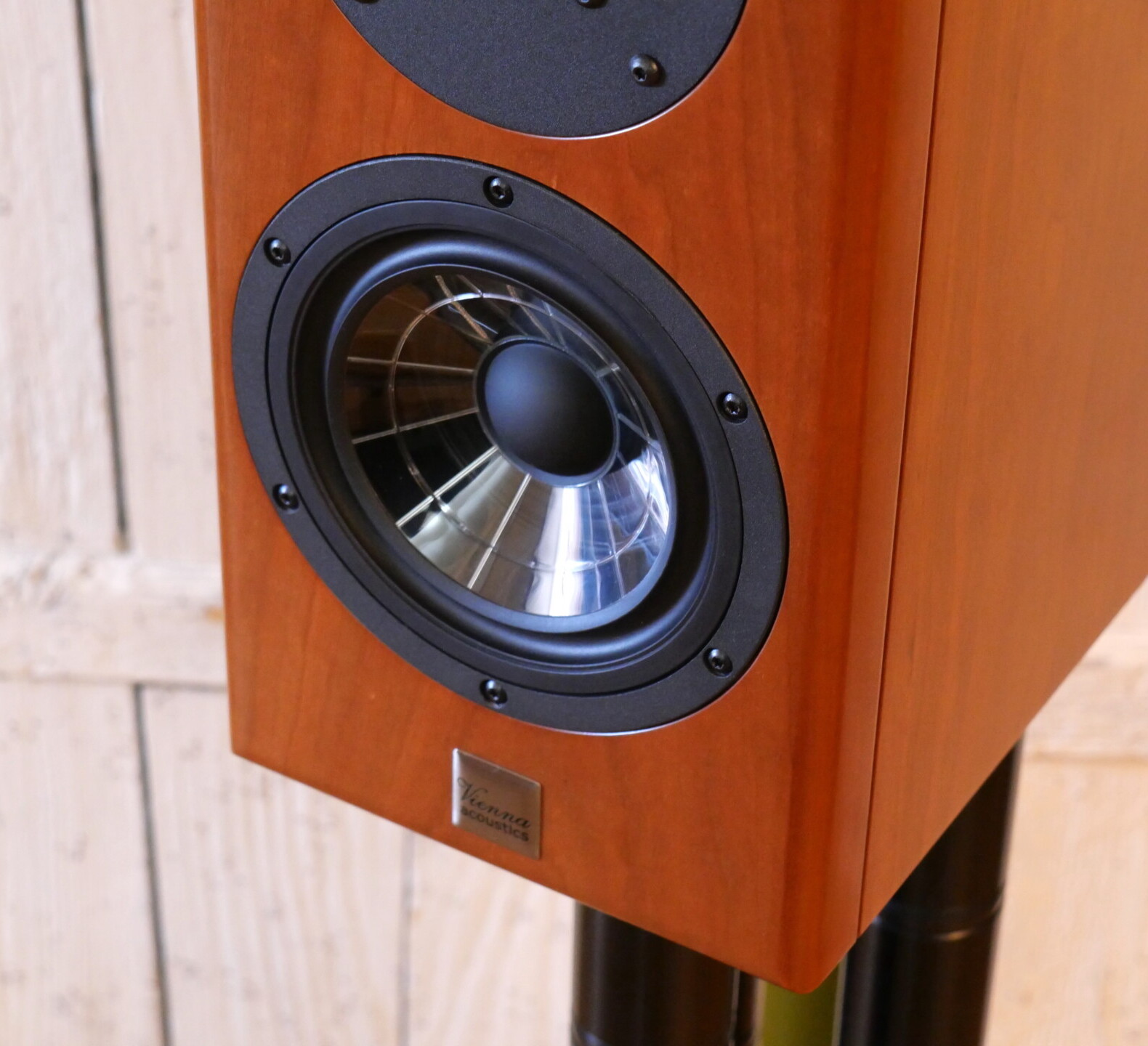 As nicely finished as the cabinet exterior is (and it is very nicely done) the devil here is deep in the internal details. Like the other speakers in the Company’s Concert Grand series, the Haydn uses proprietary drivers. The 150mm bass-mid employs a unique cone structure, dubbed Spider Cone. Moulded from Vienna Acoustic’s specially developed X3P polyproplene/polymer mix, the flared profile is stiffened by a web of radial ribs moulded into the rear surface. It’s an approach that allows designer Peter Gansterer to achieve carefully tailored mechanical performance, delivering all of the neutrality and harmonic qualities so often associated with polyproplene drivers, without the weight penalties that generally go with them. It’s an approach that has achieved impressive results in many of VA’s other speaker designs and it’s equally impressive here. It is teamed with the Company’s familiar 28mm, doped silk dome tweeter, a similarly impressive performer. Both drivers are the result of multiple evolutionary generations – and it shows in both their sophisticated tonal qualities and their seamless integration.
